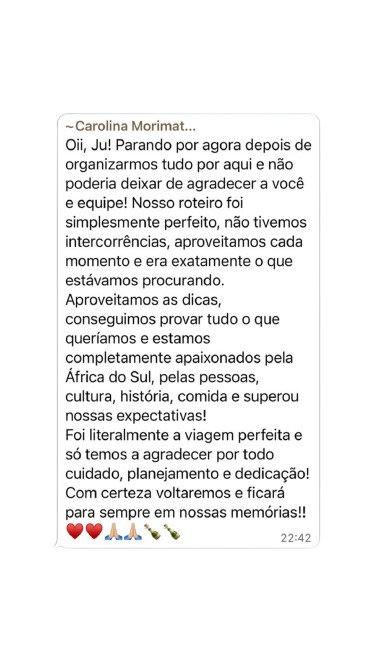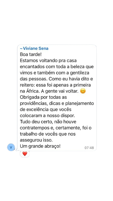 Nesta seção, você pode ver alguns relatos e feedbacks de clientes que confiaram na Viin África para planejar suas viagens.