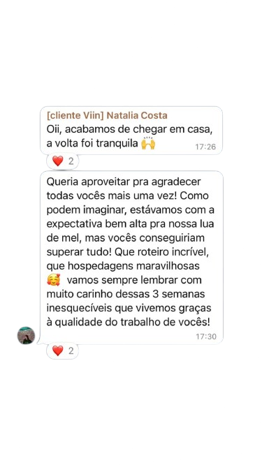 - Suporte via WhatsApp até o retorno da viagem.